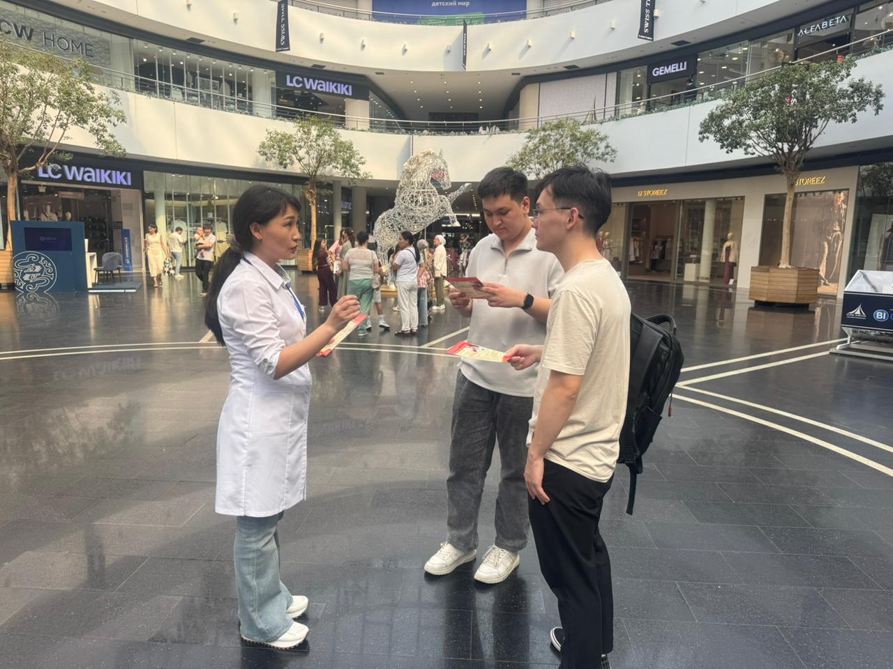 Акция барысында сауда ойын-сауық орталығына келушілерге АИТВ-ға жедел тестілеуден тегін және жасырын өтуге және қысқа уақыт ішінде АИТВ-ның мәртебесін білуге, АИТВ-инфекциясы бойынша кеңестер мен брошюралар алуға мүмкіндік берілді. Жедел тестілеуден өтуге шақыра отырып, мамандар АИТВ-ға тест уақтылы диагностикалау және емдеудің қолжетімділігін кеңейту үшін маңызды екенін атап өтті. Сонымен бірге, тұрғындарғақан қысымын өлшеу менқандағы глюкоза, холестерин көрсеткішін анықтау ұсынылды.