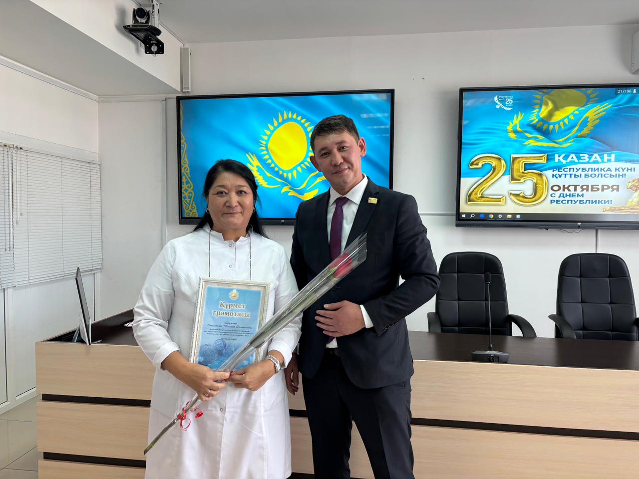 Әріптестерін құттықтай отырып, ол денсаулық сақтауды дамытуға қосқан жеке үлесі үшін ұжымға алғысын білдіріп, жылы лебіздерін білдірді.