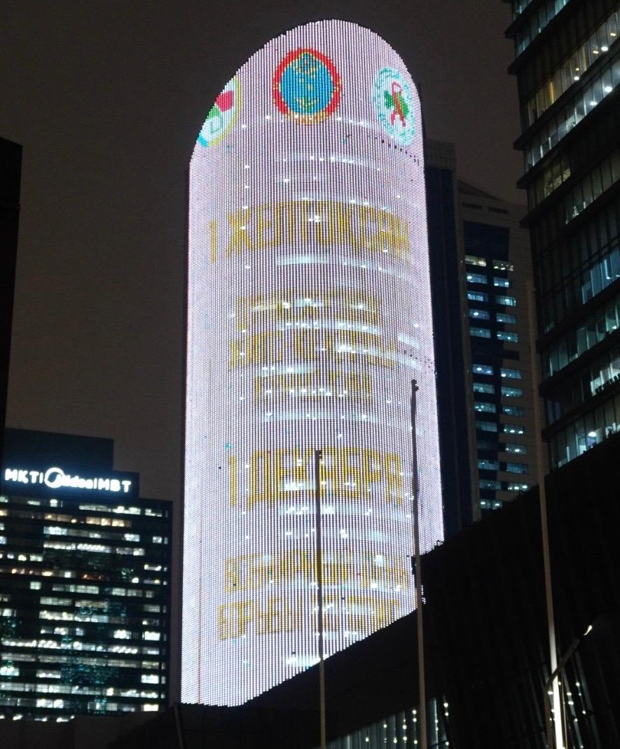 1 декабря в Астане на крупных медиафасадах транслировалась информация, посвящённая Всемирному дню борьбы со СПИДом. Инициатором мероприятия выступил Центр по профилактике ВИЧ-инфекции г. Астаны при поддержке Управления внутренней политики г. Астаны.