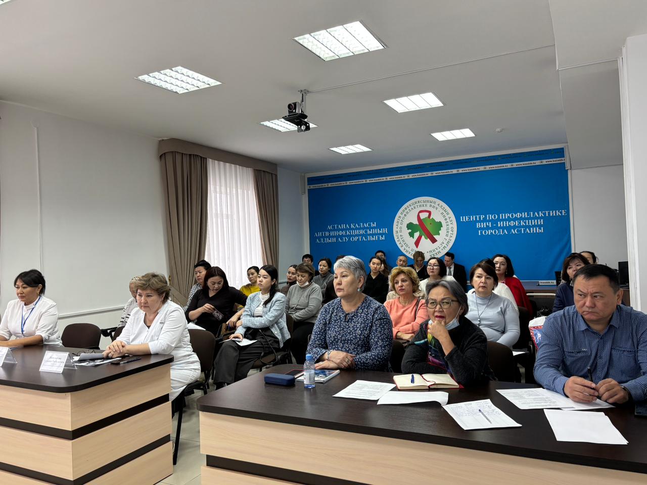 С приветственным словом выступил исполняющий обязанности директора Центра ВИЧ г. Астаны Д.В. Панченко, он отметил важность профилактики и лечения вирусных гепатитов среди пациентов ЛЖВ, вопросы постановки на динамическое наблюдение пациентов с сочетанной инфекцией. Руководитель городского гепатоцентра К.А. Шамсивалиева остановилась на порядке о взаимодействия Центра ВИЧ и ПМСП с Гепатоцентром, а также на направлении пациентов на лечение ВГС.