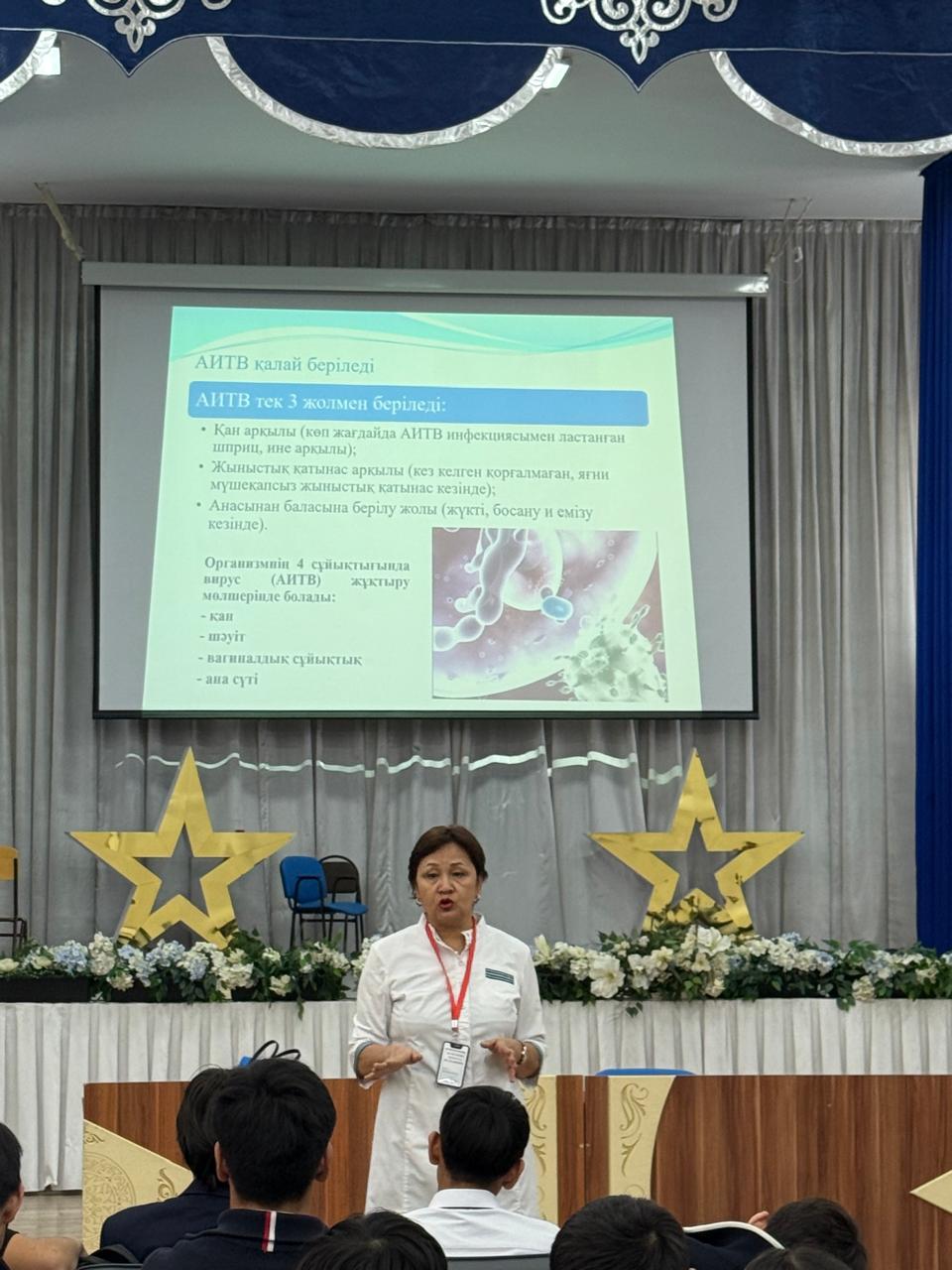 Іс-шара барысында профилактикалық жұмыс бөлімінің маманы оқушыларға АИТВ-инфекциясы мен жыныстық жолмен берілетін инфекциялардың алдын алу шаралары туралы айтып берді. Қатысушылар вирустың жұғу жолдарының ерекшеліктері туралы білді.